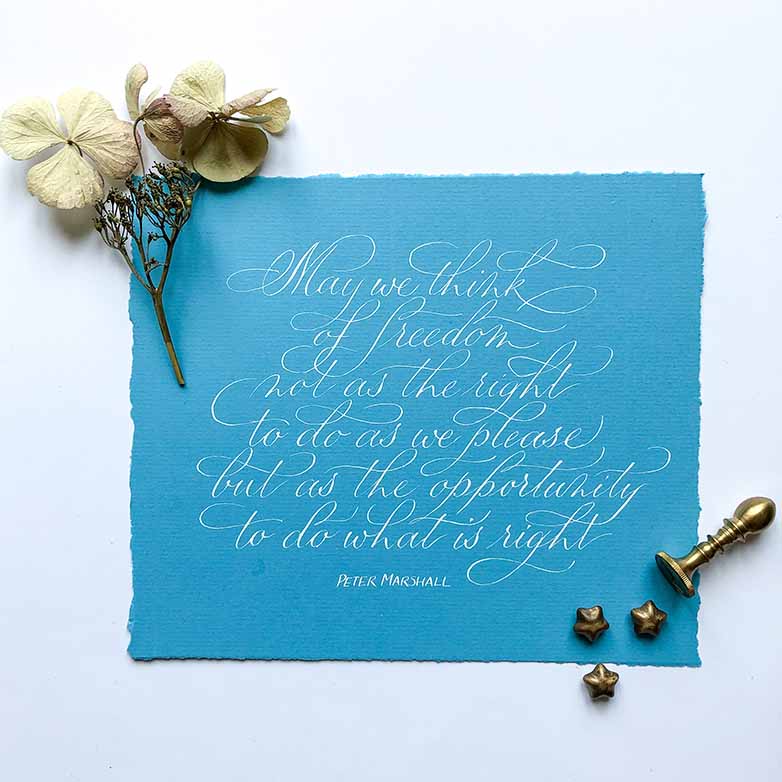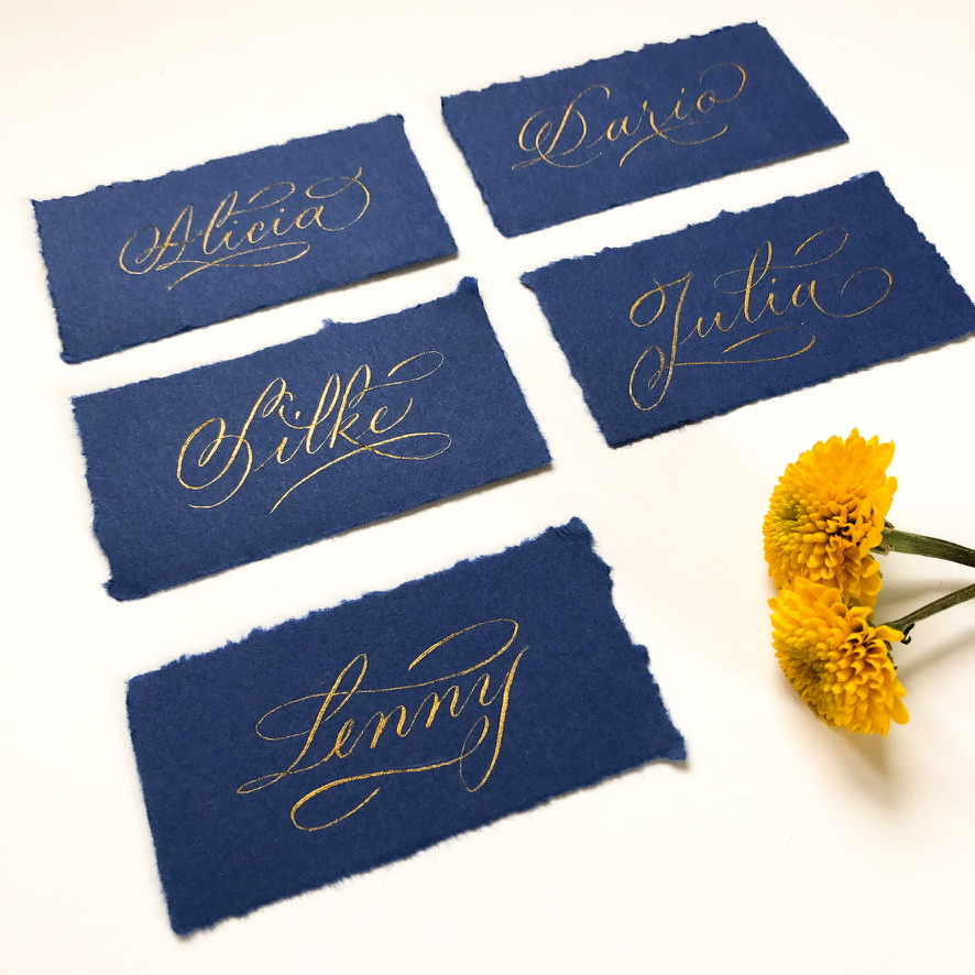 Der Kalligrafie-Stil Flourishing (engl. „Schnörkel“) basiert auf klassischen Stilen wie Copperplate oder Eliza, die mit Schnörkeln versehen werden. Hier kann reduzierter vorgegangen werden, um nur einzelne Highlights zu setzen, oder überschwänglich.