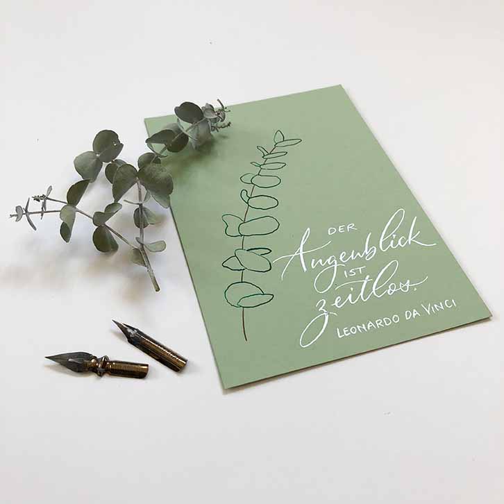 Dein Lieblingszitat für die Wand, eine Karte zu einem besonderen Anlass, ein Brief an einen lieben Menschen, ein Geschenk zur Geburt – all das bekommst du bei mir von Hand kalligrafiert. Auf dieser Seite findest du ein paar „Anwendungsbeispiele“ meiner Kalligrafie für individuelle Anfertigungen. Alle Schriften lassen sich vollständig an deine Wünsche und Vorstellungen anpassen – stöbert hier in meiner Schriftgalerie -, damit dein Herzenstext den passenden Rahmen erhält.