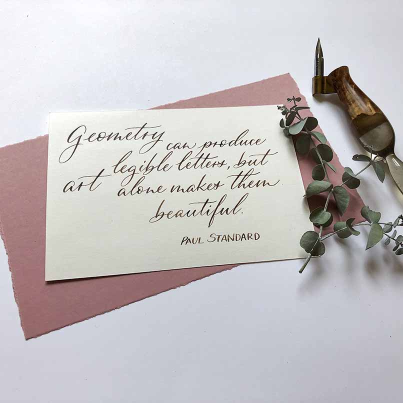 Moderne Kalligrafie zeichnet sich dadurch aus, dass sie zwar den Prinzipien der Spitzfederkalligrafie folgt, ihre Regeln aber wesentlich freier angewendet werden als bei klassischer Kalligrafie wie z. B. Copperplate oder Spencerian. Das heißt, die Buchstabenformen der Modernen Kalligrafie sind wesentlich individueller, moderner und unkonventioneller als bei klassischer Kalligrafie. Moderne Kalligrafie kann damit unendlich viele Ausdrucksformen annehmen.