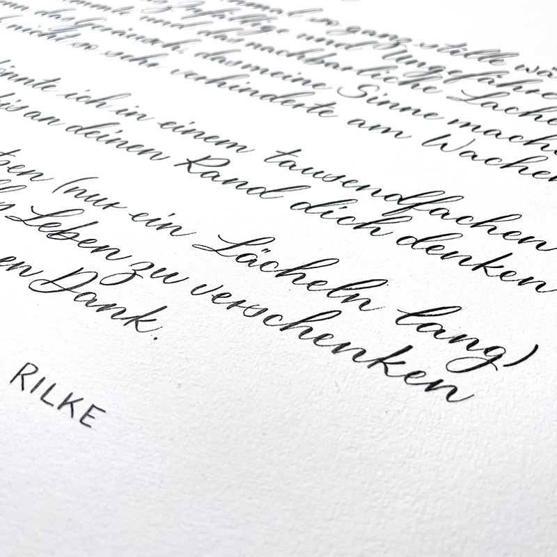 Ist diese Schrift die richtige für dein Projekt? Hier findest u ein paar Verwendungsbeispiele und -kontexte für Moderne Kalligrafie No. 1: Verschaffe dir einen Eindruck davon, ob sie zu deinem Schriftstück passen könnte.