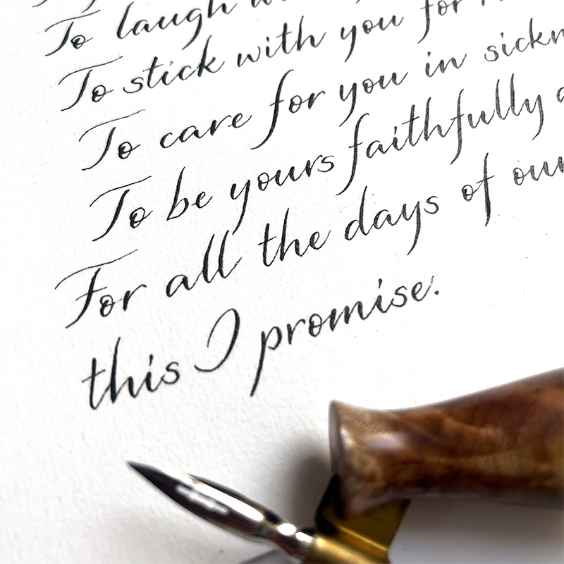 Der Stil Shannon ist eine Variante der Modernen Kalligrafie. Das Charakteristische dieser Schrift ist ihr Neigungswinkel: Besonders klassische Stile wie Copperplate und Spencerian haben einen festen Neigungswinkel und auch viele Stile der Modernen Kalligrafie sind nach rechts geneigt. Der Schriftstil Shannon ist hingegen deutlich weniger geneigt als andere Varianten der Modernen Kalligrafie und wirkt beinahe aufrecht. Sie ist äußert regelmäßig und die Buchstaben folgen festen Formen, dadurch wirkt sie sehr ruhig. So eignet sie sich für alle Arten von Projekten, von der Platzkarte über kürzere Texte bis zu längeren Schriftstücken.