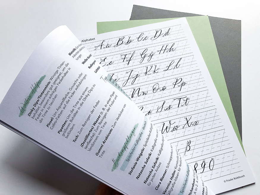 - 8 Seiten Einführung: Tipps für die Kalligrafie und zur Nutzung des Workbooks, umfangreiche Materialempfehlungen